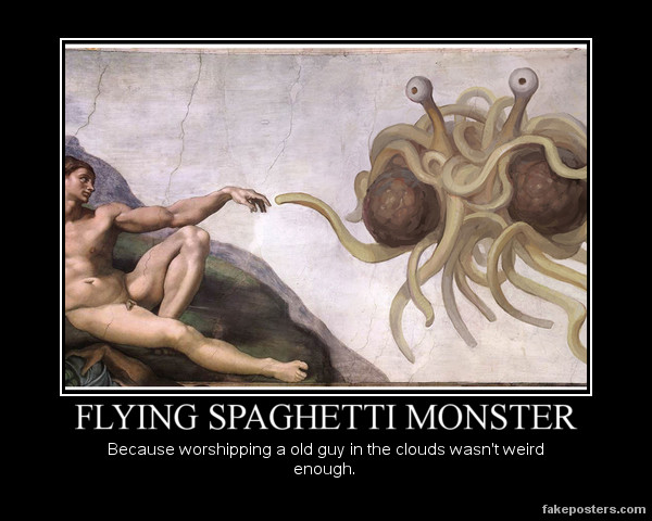 The Church of the Flying Spaghetti Monster, while having existed in secrecy for hundreds of years, only recently came into the mainstream when this letter was published in May 2005. With millions, if not thousands, of devout worshippers, the Church of the FSM is widely considered a legitimate religion, even by its opponents – mostly fundamentalist Christians, who have accepted that our God has larger balls than theirs. Some claim that the church is purely a thought experiment, satire, illustrating that Intelligent Design is not science, but rather a pseudoscience manufactured by Christians to push Creationism into public schools. These people are mistaken. The Church of FSM is real, totally legit, and backed by hard science. Anything that comes across as humor or satire is purely coincidental.